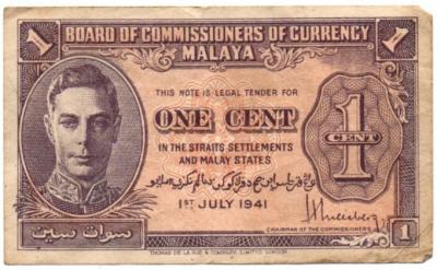 Malaja. 1 centas ( 1941 ) VF