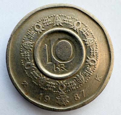 Norvegija 10 kr 1987